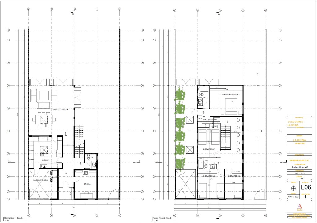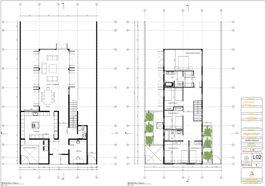 Viviendas Tipo: El proyecto se compone de viviendas de dos pisos distribuidas en al menos dos tipologías (Tipo A y Tipo B), ambas optimizando la distribución interior con: