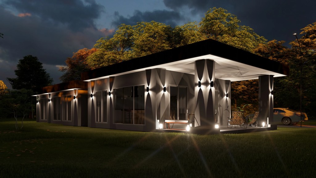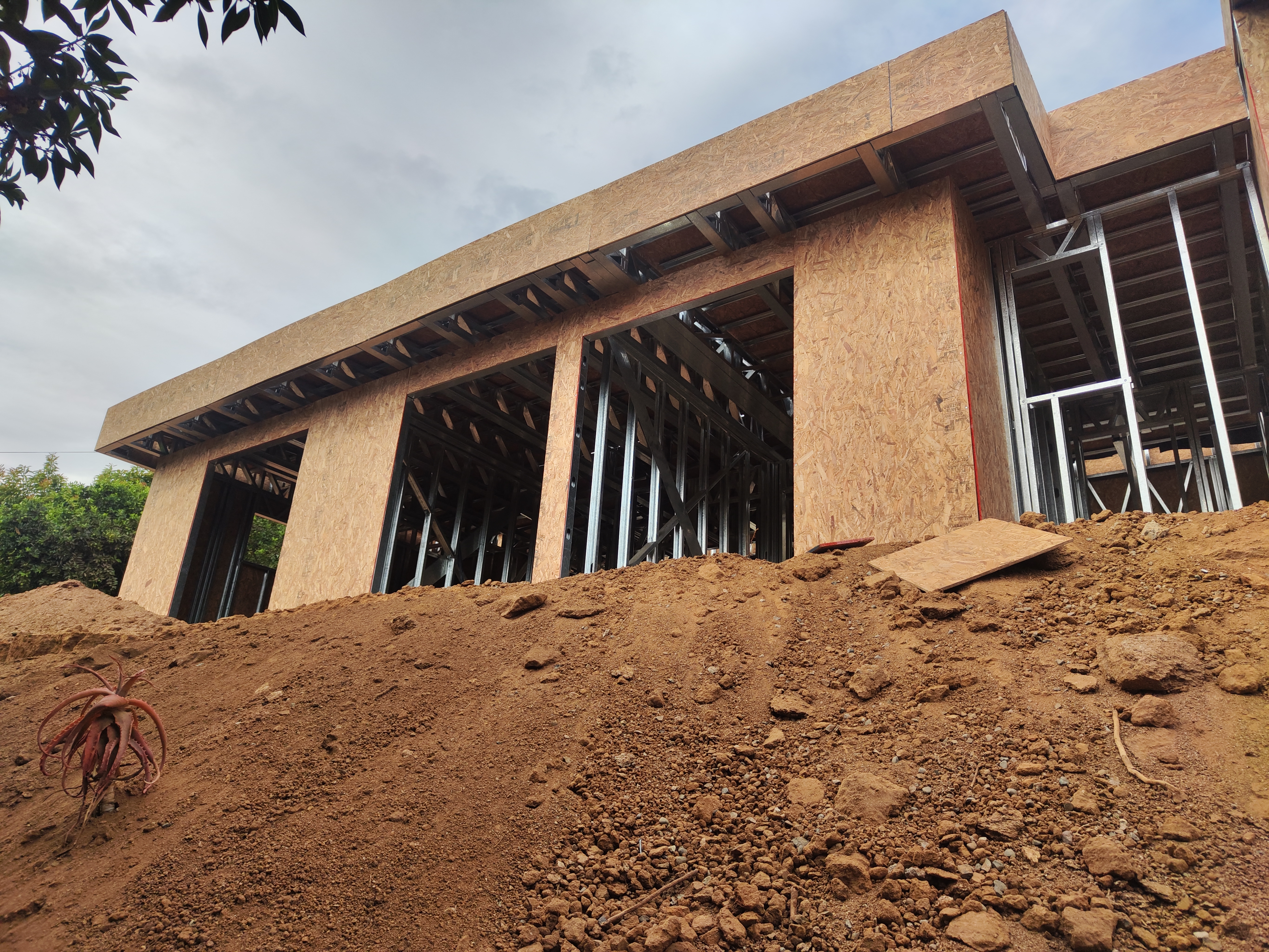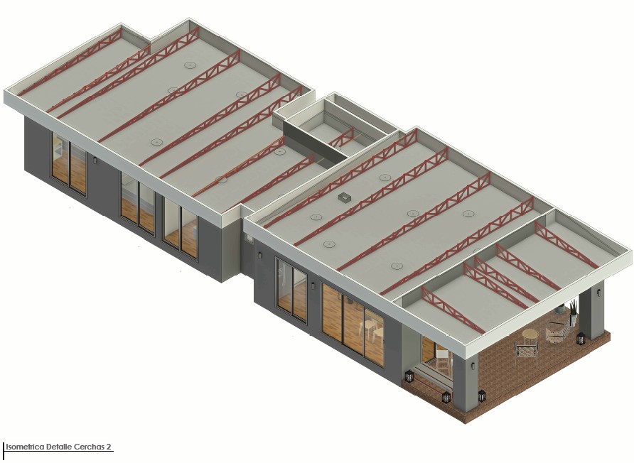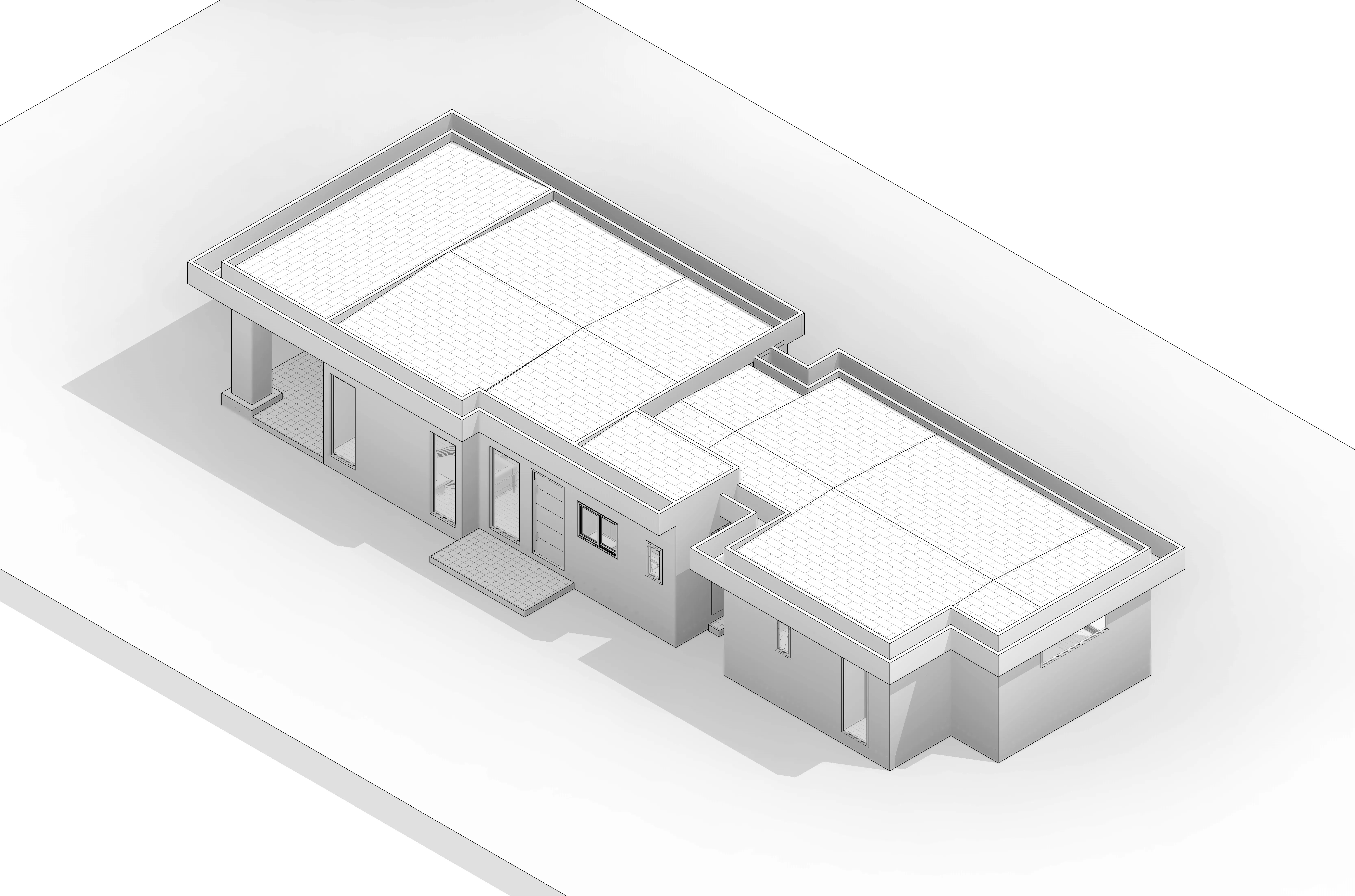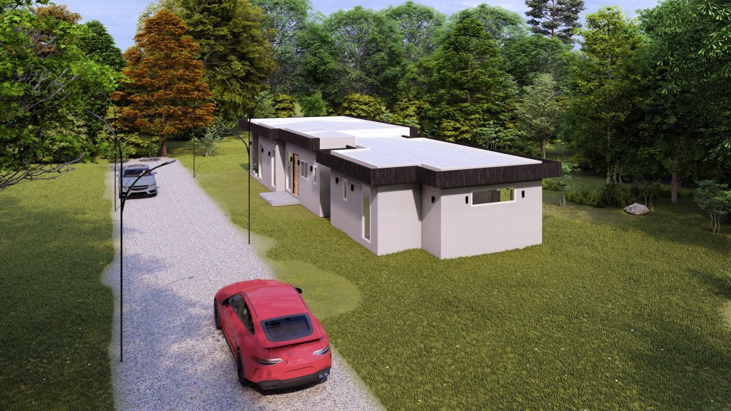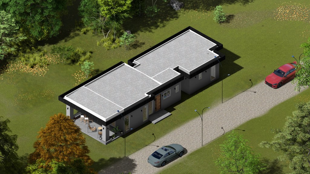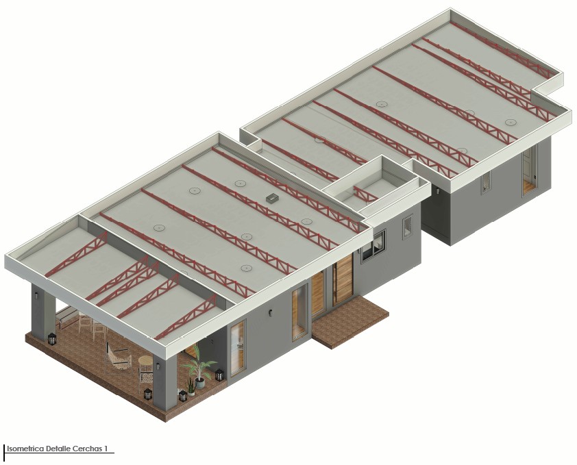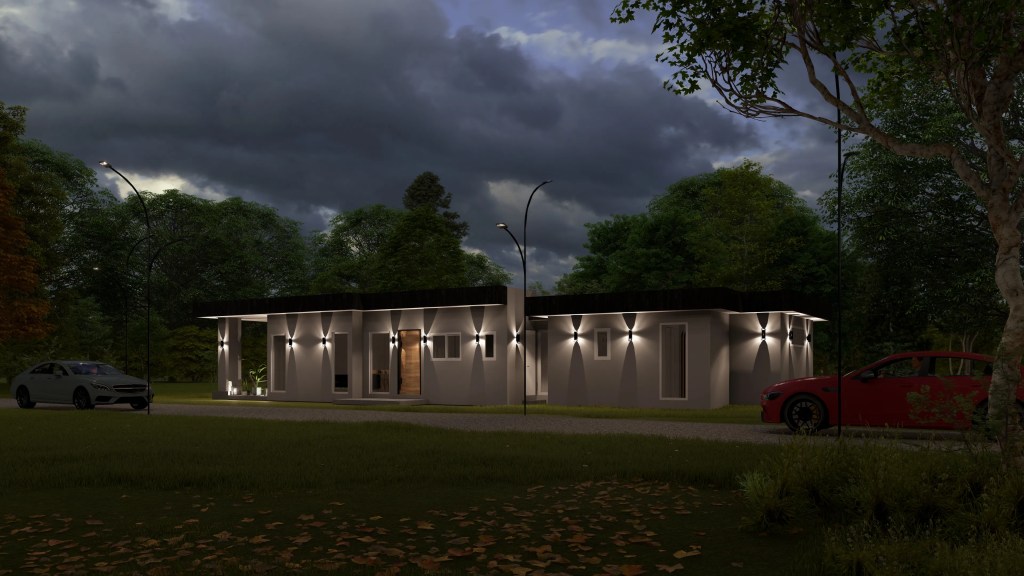 Proyecto de vivienda unifamiliar desarrollada en la comuna de Olmué, con un diseño de estilo moderno que se integra al entorno natural del valle. La propuesta se organiza en un solo nivel, priorizando la funcionalidad y la conexión visual con el exterior.