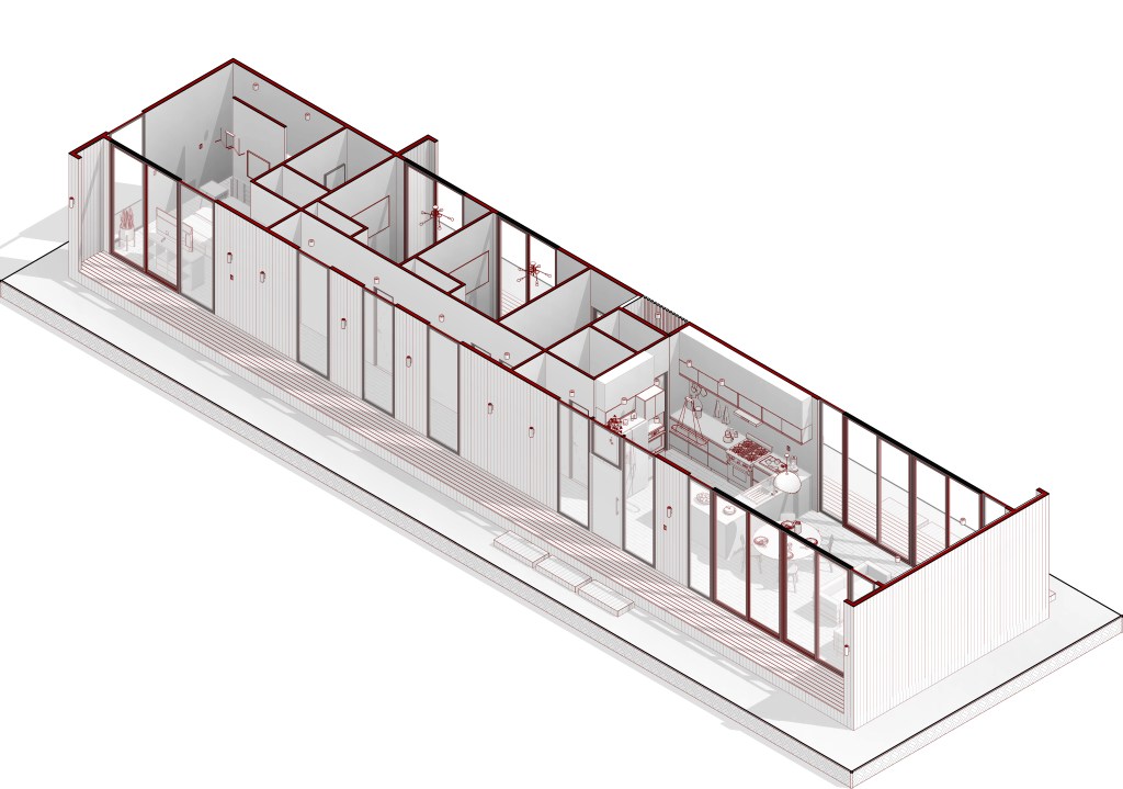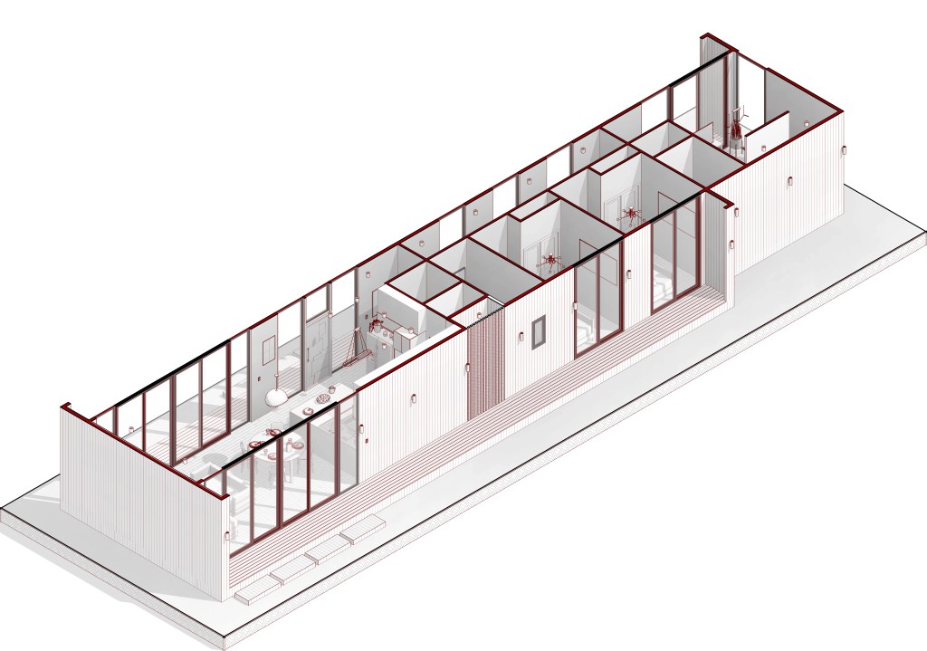 La vivienda se desarrolla en un solo nivel, priorizando la fluidez y la zonificación clara: