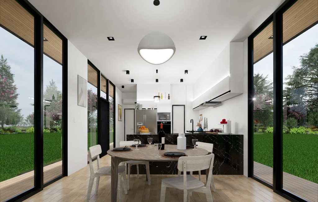 Proyecto de vivienda unifamiliar que encapsula el minimalismo y la eficiencia, diseñado para integrarse armónicamente con su entorno natural.