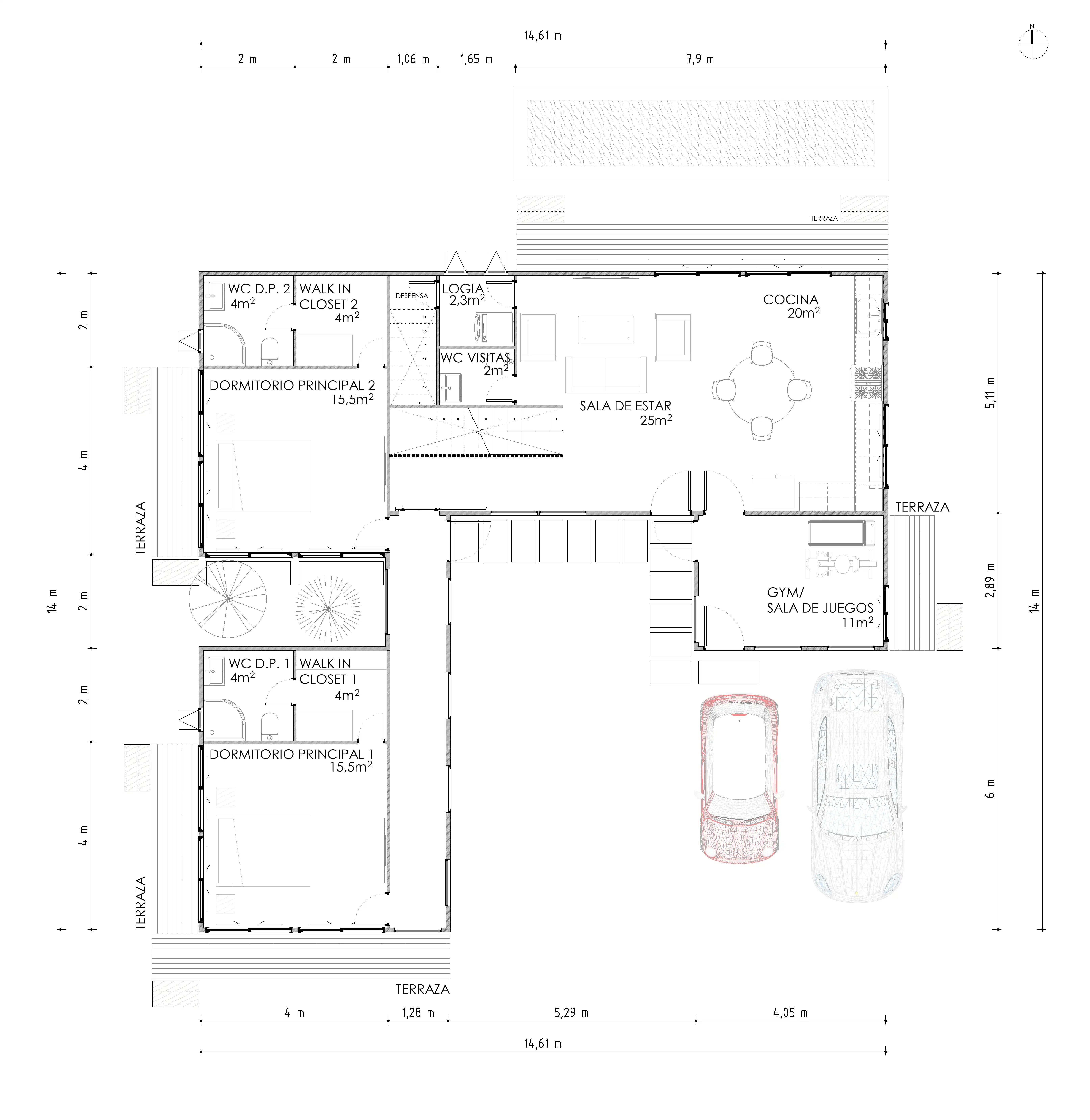Proyecto de 177,5m² en su totalidad.