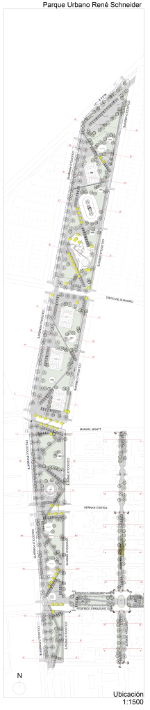 - Ejes de Recorrido: Creación de senderos peatonales bien definidos y accesibles a lo largo de toda la extensión del parque.