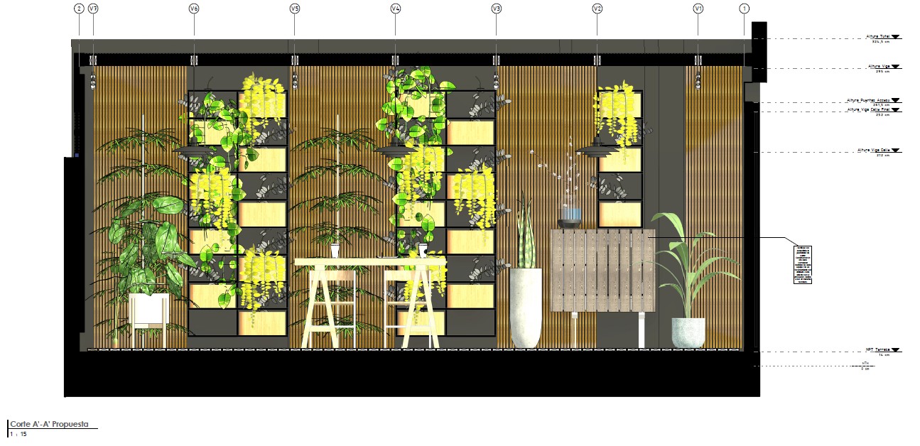 - Ambiente Natural: Revestimiento de muros con listones de madera para generar calidez y un telón de fondo orgánico.