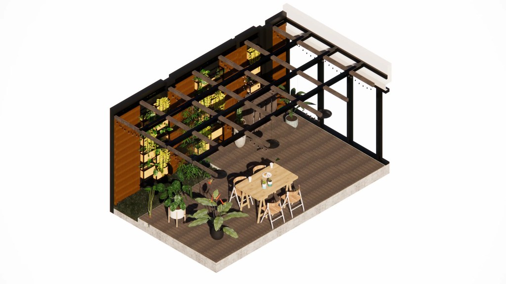 Concepto Clave: Integrar elementos naturales (Diseño Biofílico) y materiales sostenibles en un entorno moderno e industrial.